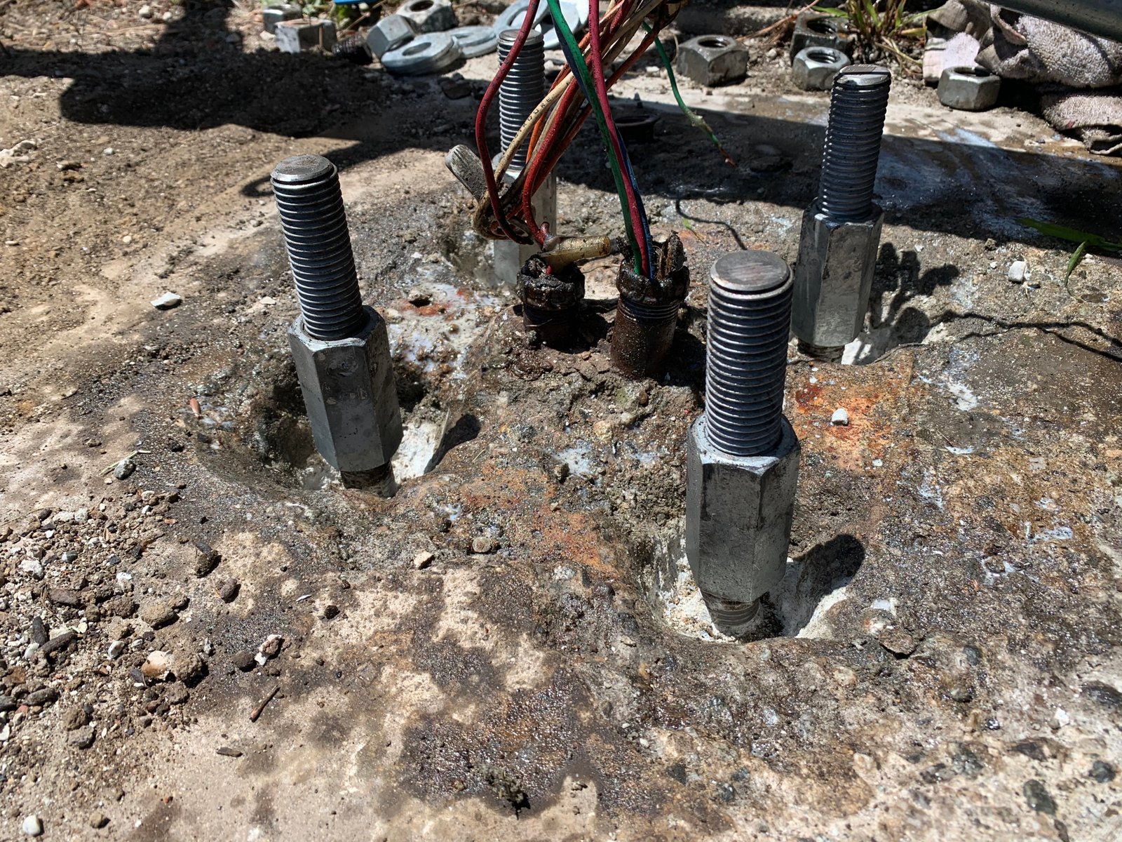 Light Pole Systems’ Thread Extenders are designed to lengthen anchor bolts that are too short to properly mount a light pole, yet still structurally sound. Sometimes anchor bolts are set to deep in concrete or they rust. If they rust, chip away concrete to expose useable thread, cut off excess anchor bolt, install the Thread Extenders, and install the light pole. If the bolt is simply too short, ensure all bolts are the same height with enough exposed thread, install the Thread Extenders, then install the light pole. There is no bolt circle adjustment. For bolt circle adjustment check out the Anchor Bolt Adapter.
